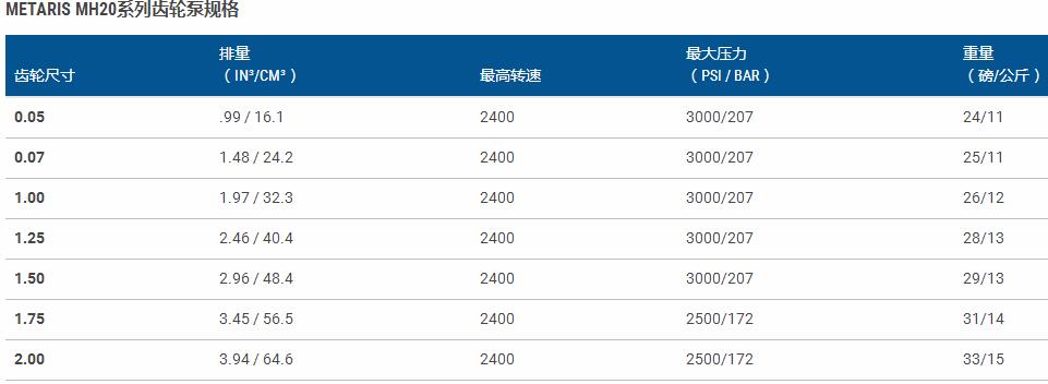 Metaris MH20系列軸承泵和電機(jī)有7種不同的齒輪尺寸,帶有各種安裝法蘭,軸配置和端口選項(xiàng)。還可提供多節(jié)單元,背負(fù)式設(shè)計(jì),銷釘組件和分流器。這些泵采用球墨鑄鐵外殼,可為最苛刻的應(yīng)用提供高達(dá)3000 psi的額定壓力。