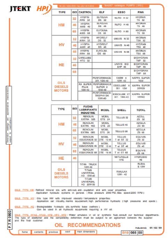 請(qǐng)記住,所描述的工作循環(huán)可以使用液壓礦物油,粘度在12到150 cSt(65.2和700 SUS)之間。此外,泵只能以單向旋轉(zhuǎn)運(yùn)行(根據(jù)您的訂單指定旋轉(zhuǎn)方向)。最小粘度12 cSt(65.2 SUS)也可用于液壓回路中的最高溫度。