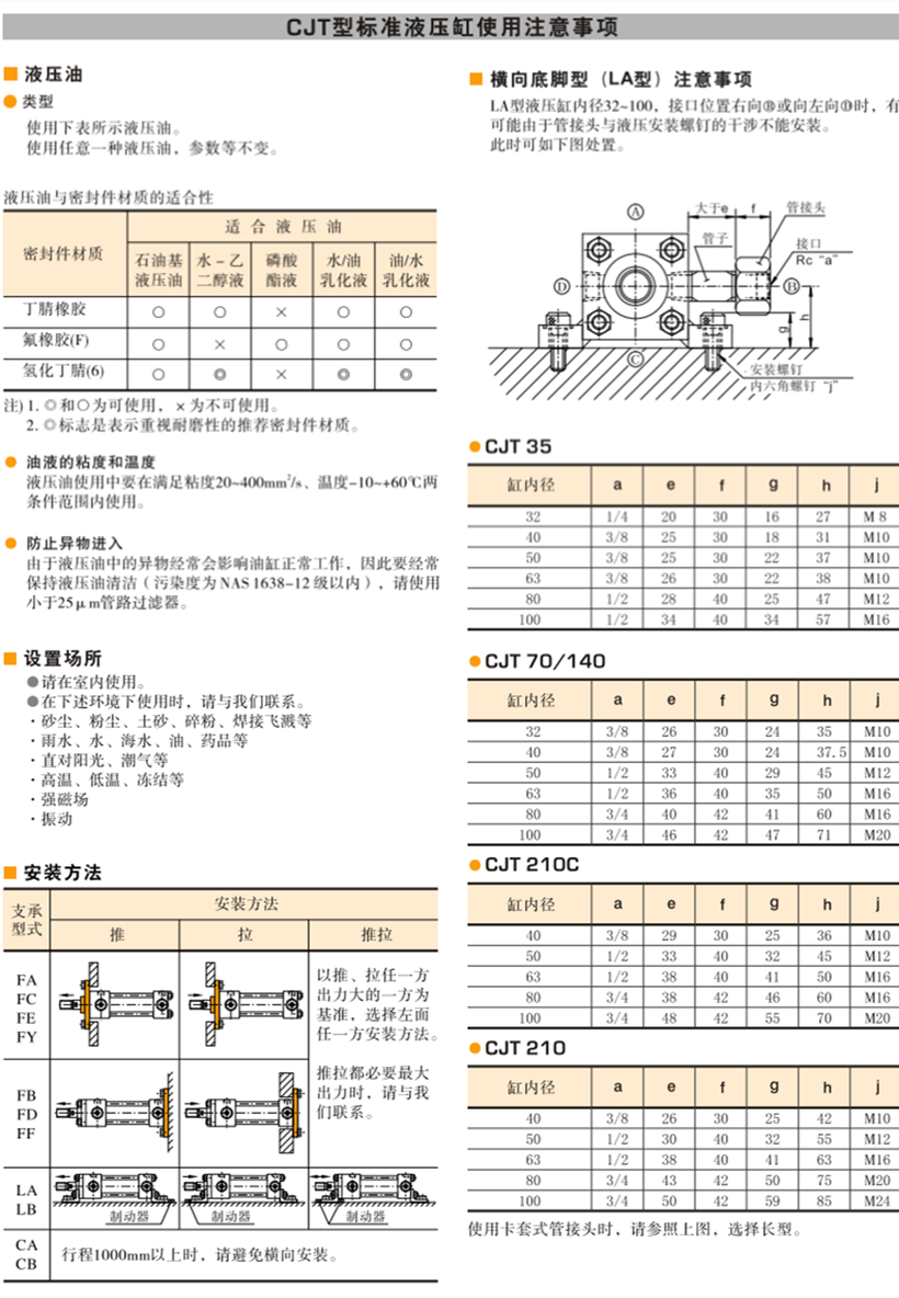 油研CJT型標(biāo)準(zhǔn)液壓缸規(guī)格: