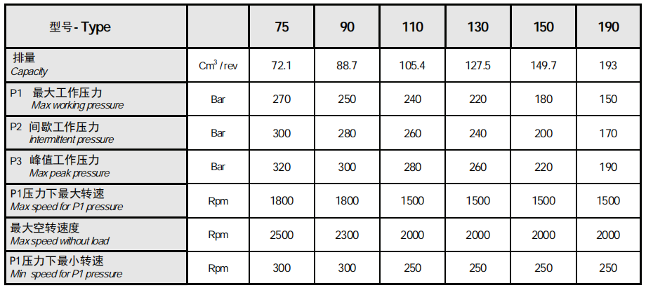容量范圍廣:75-90-110-130-150 cm 3 /rev。
