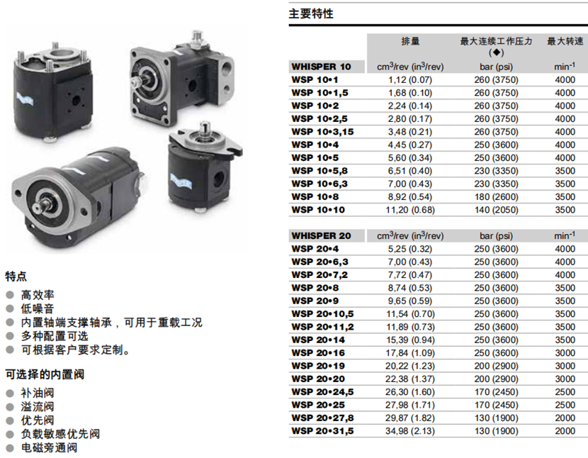 威世(WHISPER)系列擁有國(guó)際專利技術(shù),專門的低噪音新型齒輪泵,軸、法蘭和接口尺寸及形式有多種標(biāo)準(zhǔn)可選(包括SAE,DIN,EUROPEAN等),應(yīng)用廣泛。