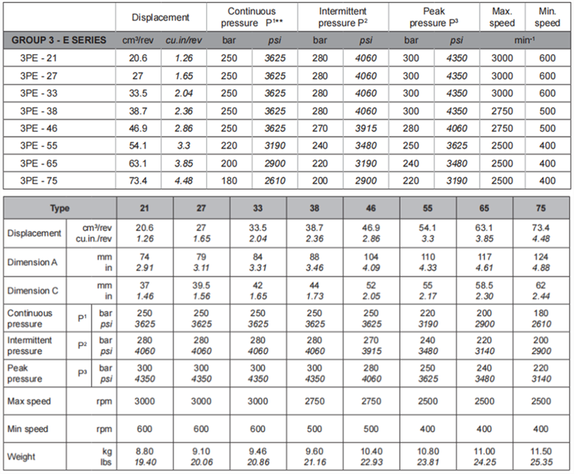SALAMI薩拉米齒3PE系列齒輪泵型號(hào)及規(guī)格參數(shù):