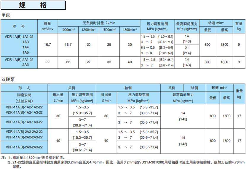 不二越VDR22設(shè)計(jì)系列變量葉片泵技術(shù)參數(shù):